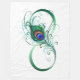 O símbolo do infinito com uma pena brilhante, verde, de pavão artístico sobre um fundo branco. Tatuagem.