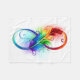 Símbolo infinito desenhado artificialmente com uma bela pena arco-íris sobre fundo branco. Tatuagem.