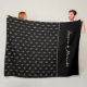 Relaxe no estilo musical com este elegante cobertor de velo, apadrinhado com falsos cordões de ouro sobre fundo preto. Personalize com seu(s) nome(s) ou outro texto na tipografia de script no painel preto no topo. Um presente ideal para amantes da música.