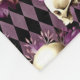 Este padrão inclui crânios e flores roxas e rosa contra um padrão roxo empoeirado e harlequin preto. Este padrão é uma mistura de capricho e assustador num fundo adorável que é perfeito para alguém que ama designs góticos ou únicos.