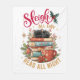 A festive and cheerful Christmas design showcases an adorable black kitten nestled on a stack of books. Beside the books are vibrant poinsettias, pine branches, holly berries, and a steaming cup of cocoa. Golden stars frame the scene, adding a magical touch. The colorful text reads, "'Sleigh all day, read all night." This delightful design is featured on a variety of products, making perfect gifts for book lovers.
