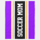 Este esportivo, design atlético, apresenta dentro de texto SOCCER MOM ousado, uma faixa preta larga realçada com faixas duplas de corrida brancas e amarelas contra faixas externas roxas brilhantes. O texto neste design pode ser personalizado.