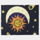 Esse cobertor colorido mostra o sol e a lua, estrelas amarelas, cometas, asteroides e galáxias, contra fundo azul-da-noite. Um adorável acessório incomum para o quarto.