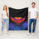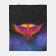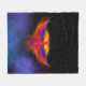 Fiery phonix voando pelo espaço em uma nuvem nebulosa azul e roxa. O cintilante aglomerado de estrelas que coroam a cabeça mítica de ave forma a constelação de fênix. Orientação vertical. ♡ Idyllfire