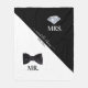Um design elegante de tema de casamento em preto e branco, perfeito para recém-casados ou para a comitiva da noiva. O cobertor de flanela é projetado em preto e branco com uma gravata borboleta preta elegante para o "Sr." e um lindo diamante brilhante para a "Sra.". A data estabelecida está localizada no topo, que pode ser personalizada para a data do seu casamento ou uma data memorável em suas vidas. Uma fonte de caligrafia elegante é usada para os nomes da noiva e do noivo localizados na parte inferior. Personalize o texto e faça-o seu.