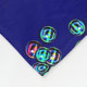 Este trabalho de arte apresenta um padrão de abstrato vibrante e simétrico contra um fundo azul índio profundo. O design combina elementos florais e geométricos, com formas pétais luminosas dispostas em formações radiais, parecidas com flores estilizadas ou estereótipos. Essas pétalas brilham em tons de azul elétrico com sutis contornos verdes, criando um sentido dinâmico de profundidade e energia. Espalhados entre os motivos maiores estão pequenos aglomerados de órbitas iridescentes, semelhantes a bolhas em matizes arco-íris - vermelho, teal, rosa e verde - acrescentando um toque lúdico e futurista. No centro da composição está uma formação caleidoscópica em forma de mandala composta dessas mesmas esferas brilhantes, ancorando o design e aprimorando sua simetria hipnótica.