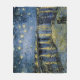 Algodão em Cordeville. Vincent Willem van Gogh. Paisagem noturna em tons azuis e amarelos escuros. Há uma ponte sobre o rio. No primeiro plano, um homem e uma mulher caminham pelo cais. As estrelas estão brilhando no céu. Reprodução de famosas imagens de arte no dominio público.