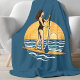 Add coastal vibes to your living space with this SUP inspired throw blanket. Featuring a woman paddling at sunset beneath the glowing orange sky, the ocean ripples from the salt air, as the wind gently blows her salty hair. The graphic is printed on soft and cozy deep sea blue fleece. Perfect for beach bums, paddleboarders and nautical home decor. The matching reversible throw pillow is available in my store.