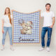 Cobertor De Velo Tartan plaid reindeer snowman blue beige name