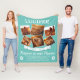 Um cobertor personalizado do memorial de animais de estimação com um fundo teal de tendência que pode ser mudado para qualquer cor, 6 fotos valiosas do seu amado animal, impressão de pata cardíaca, o texto da lembrança "para sempre em nossos corações", uma citação de simpatia que diz "quando o amanhã começa sem mim, não pense que estamos distantes, para cada vez que você pensa em mim, estou bem aqui em seu coração" o nome do seu cão ou dos seus gatos e a data de nascimento/morte.