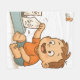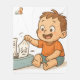 ilustração engraçada e adorável de um bebê puxando tecidos de uma caixa, enquanto os tecidos mostram caras preocupados.