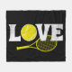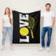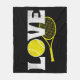 Design de texto "Love" com tênis amarelo e decoração de raquete