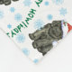 Celebre a temporada de férias e fique aquecido com este cobertor coberto por filhotes de Newfoundland vestindo chapéus de Papai Noel em flocos de neve e as palavras, Happy Howlidays! Excelente ideia de presente de Natal para a família e amigos que amam Newfie.