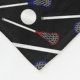 O teste padrão moderno e na moda do lacrosse dos esportes com as varas vermelhas e azuis do lacrosse e uma bola de borracha branca com fundo preto e com a listra preta personalizada com apenas adicionam seus presentes conhecidos ou presentes do monograma ou suas iniciais para um presente original. Ideias do presente dos esportes para homens e meninos e meninas. Ideal para aniversários.