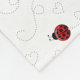 Esta cobertura do velo caracteriza um teste padrão bonito dos joaninhas vermelhos e pretos que deixam uma fuga do coração em um fundo branco. Na parte superior é uma beira contrastar de bolinhas pretas no vermelho brilhante. Seu nome está no preto em um círculo branco que separe as duas peças do design. Bonito, e personalizado apenas para ela!