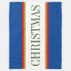 Este design de feriado colorido apresenta uma larga faixa central horizontal branca esboçada em pinças coloridas, vermelhas e ouros, castanhas entre as riscas externas azuis em negrito. O texto opcional do NATAL, se usado, pode ser personalizado.