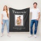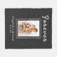 Essa manutenção personalizada preservará suas memórias e o manterá aquecido ao mesmo tempo. Este design pode ser personalizado com a sua imagem, nomes e data favoritos. O texto do título exibe atualmente a palavra "Forever" em uma fonte de script escrita à mão, mas esse texto pode ser alterado no menu Editar, se desejar. A tipografia branca é definida em uma fonte conhecida de San Serif (a data) e uma fonte elegante de script e colocada em um sutil padrão preto e de faixa de cinzas. O padrão será mais visível quando ampliado para o tamanho do cobertor.