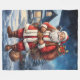 O clássico cobertor de vintage com a imagem de Papai Noel é uma representação emocionante de alegria de férias. Papai Noel, em seu icônico terno vermelho com caimento branco, é visto com um sorriso jovial e olhos cintilantes que irradiam gentileza e alegria. Sua barriga-redonda, indicativa de sua natureza alegre, é coberta por um grande cinto de ouro. Em suas mãos luvas, ele tem um saco cheio de presentes lindamente envoltos, prontos para serem entregues. O pano de fundo é uma noite serena de inverno, o céu pintado com tons de azul profundo e pontilhado com estrelas cintilantes. A lua brilha intensamente, lançando um brilho suave na paisagem coberta de neve. Os flocos de neve estão caindo suavemente, borbulhando a terra em uma camada branca pristina. Nestled neste inverno a terra maravilhosa é uma casa confortável, que emana calor e conforto. A casa de campo, com as paredes de pedra e o telhado, é enfeitada com luzes de Natal brilhantes. Fumaça saindo da chaminé, sugerindo um dentro de fogo rugido. As janelas derramares uma luz quente, convidando, criando um forte contraste contra a noite fria de inverno. Esta imagem clássica de Santa Claus e uma casa acolhedora numa noite de inverno encapsula a essência do Natal - calor, alegria, e a antecipação de dar e receber presentes.