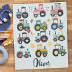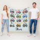 Este adorável cobertor de velo personalizado apresenta um lindo padrão de trator de bebês com alguns ícones de fazenda.
