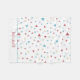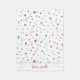 Um cobertor moderno e chico com formas geométricas de triângulos e espirais em verde pastel, amarelo e vermelho. Personalize com o nome do seu bebê.