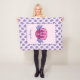 Este cobertor de velo fácil de personalizar apresenta um bonito gráfico triceratops cor-de-rosa e um padrão de folha roxa em um fundo rosa pálido.