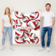 Este cobertor de velo, temido pelo voleibol, pode ser personalizado com o nome do atleta no topo da imagem de um bando de vermelho, cinzas e volichões brancos de tamanho variado - os volichões são sombreados seletivamente para uma aparência única em 3D - por katz_d_zynes