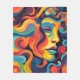 Rochas vivas e remendos num arco-íris de cores criam o perfil abstrato de um homem ou mulher com expressão pacífica. Sombras de azul, laranja, amarelo e vermelho se misturam harmoniosamente para traçar traços faciais e cabelos fluidos.