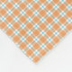 Two fabric swatches are shown. The top swatch has an orange and white plaid pattern, and the bottom is plain white, each labeled as "Front" and "Back."