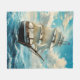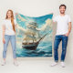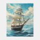 Um veleiro de madeira atravessa as ondas sob o céu azul e nuvens de tempo justo neste belo cobertor de velo. Perfeito para quem ama velejar.