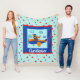 Bonita manta de velo personalizada para o seu "aspirante a piloto" favorito! Doce urso-piloto voando pelas nuvens. Personalize com o nome do seu filho. O cobertor de velo suave é azul, com estrelas laranja e amarelas dispersas.