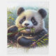 Pintura de jovens panda giros comendo prigos de bambu verde