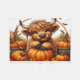 Vaca planalta ilustrada cercada por abóboras e milho, simbolizando a colheita do outono. A cena alegre captura a essência do outono com suas cores quentes e convidativas e seu caráter brincalhão de animal.
