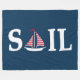 Ilustração de design de texto de vela com decoração de barco à vela em fundo azul escuro. É possível mudar a cor de fundo e adicionar uma diferente à design com sua escolha.