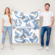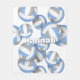 Este cobertor de velo de vôlei tem o tema da diversão pode ser personalizado com o nome do atleta no topo da imagem de um bando de azuis-claro, cinzas e volicbolas brancas - os volleybolas são sombreados seletivamente para uma aparência única em 3D - por katz_d_zynes