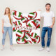 Este cobertor de velo, temido pelo voleibol, pode ser personalizado com o nome do atleta no topo da imagem de um bando de volichões vermelhos, verdes e brancos variados - os volichões são sombreados seletivamente para uma aparência única em 3D - por katz_d_zynes