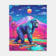 Um gorila neonazuis vagueia uma selva psicodélica com montanhas surreais, água brilhante e um sonho de pôr do sol. Perfeito para arte de parede vibrante e designs (Este Design é feito com IA). Faça a ordem hoje e encare a alegria de Comprar!