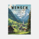 Vetor revertro Wengen viagem design. Wengen é uma aldeia alpina suíça na região da Oberland Bernese. É conhecida por seus chalés de madeira e hotéis belle époque.