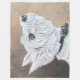 West Highland White Terrier, Westie olhando para cima, em perfil com fundo marrom. Benji. Copyright © 2025 Angi Laframboise. Todos os direitos reservados. Dons de cães de arte para amantes de cães.