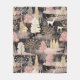 A blanket illustrated winter landscape in a dreamy pink palette, featuring rolling blush-toned snow hills, elegant deer with golden antlers, and a mix of pink deciduous trees and deep blue evergreens. White-and-gold fantasy towers rise in the distance, adding a magical storybook feel. Falling snowflakes, snowy shrubs, and soft color contrasts create a modern, whimsical winter aesthetic