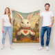 Cobertor De Velo Whimsical White Rabbit Hearts Enchanted Wonderland