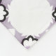 "Patterned towels displayed, featuring a repetitive design of purple floral shapes with black outlines on a white background. The top image shows the towel hanging on a rod, while the bottom image displays a folded washcloth. The design conveys a clean and decorative aesthetic."
