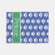Pata branca e branca de filhotes esparramada através de um cobertor azul médio. Personalize a faixa verde e branca com sua escolha de nome ou texto especial para seu "melhor amigo".