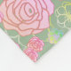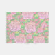 Light pink tea roses are featured on bright green leaves and pastel green background.