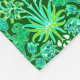 Folheto de velo em uma safra do padrão William Morris de jacintos, tulipas e folhas, em tons de esmeralda e jade verde, acentuados com aqua e branco, sobre um fundo verde florestal profundo