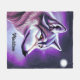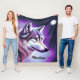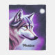 Este é um belo cobertor de velo para um amante de lobo que apresenta uma ilustração de um rosto de lobo místico em perfil com branco e tons de roxo e azul. O nome no cobertor é personalizável com o nome do destinatário.