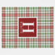 Cobertura do lance da xadrez do Natal da casa da quinta em vermelho, em verde e fora do branco com inicial e sobrenome personalizados no centro.
