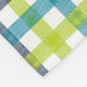 Esta xadrez de estilo de verificação tem um pré-disquete com faixas de interseção desenhadas à mão de verde limão, azul-turquesa e azul-marinho contra um fundo branco. Este cobertor de velo tem uma faixa azul marinho pronta para ser personalizada com um nome.