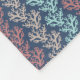 O Oceano inspirou cobertor de velo com um padrão ziguezague de corais em azul-aqua, esticado e rosa empoeirado sobre fundo azul-marinho.