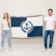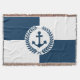 Design com temas náuticos, com decoração da soleira da âncora e da soleira do louro sobre fundo geométrico azul e branco
