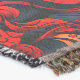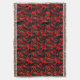 Este cobertor tem um design vermelho e preto nele.
